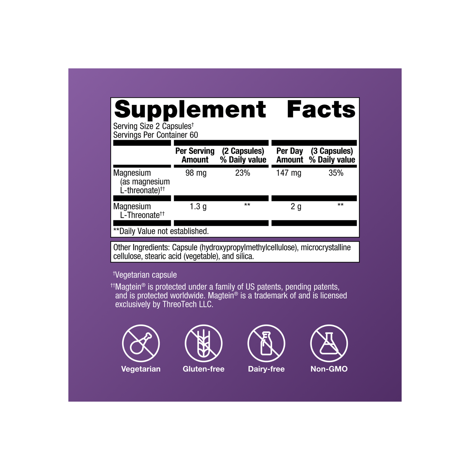 This advanced supplement supports brain health, memory, and mental clarity with magnesium L-threonate, a clinically studied form of magnesium. Ideal for adults seeking cognitive support, it enhances focus, attention, and healthy brain cell activity with fast-acting benefits in as little as 30 minutes. Its vegetarian formula ensures purity and efficacy. Take three capsules daily in divided doses—one in the morning and two two hours before sleep, or as directed by a healthcare practitioner to promote sharp thinking and restful sleep.